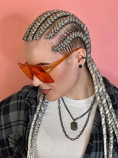 Cornrows are neat braids created with added synthetic hair. The material can be added from the very beginning of the braid, or gradually along the length for a smoother and more natural look. This technique gives extra length, density, and vibrant color. Suitable for hair from 15 cm. • Wide choice of colors — natural shades, bright tones, or mixed colors. • Different braid patterns available: straight lines, zigzags, waves, or creative designs. • Safe technique that does not damage natural hair. • Perfect for photoshoots, festivals, sports, and stylish everyday looks. Wearing time: • Up to 5 braids — 7–10 days • 5 to 8 braids — up to 2 weeks • 8 to 12 braids — 2–3 weeks • 12 to 14+ braids — up to 1 month Cost: • Up to 4 cornrows — $140 • From the 5th cornrow — $25 each • One medium braid — $15 • One microbraid — $10